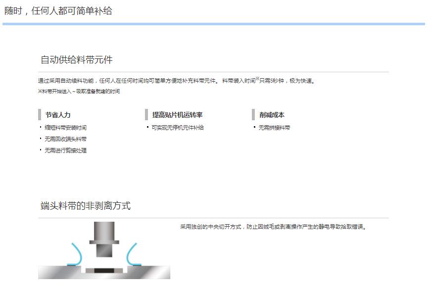 Auto Loading Feeder 1.元件供料的革新2.自動供應(yīng)料帶元件3.卓越的操作性